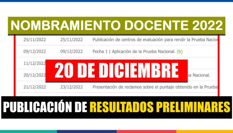 | 23/12/2022 | 23/12/2022 | Publicación de resultados preliminares de la prueba nacional |